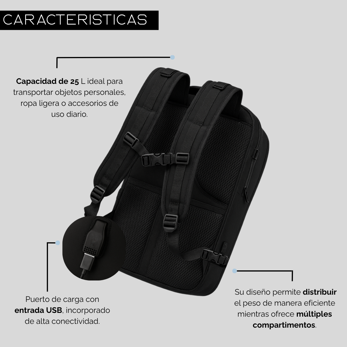 -Capacidad de 25 L ideal para transportar objetos personales, ropa ligera o accesorios de uso diario.