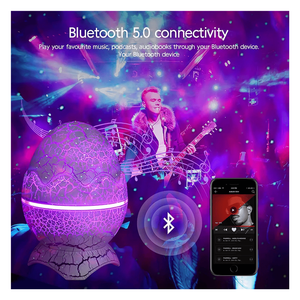 Parlante Proyector Huevo Dinosaurio Blanco Control Remoto Luces