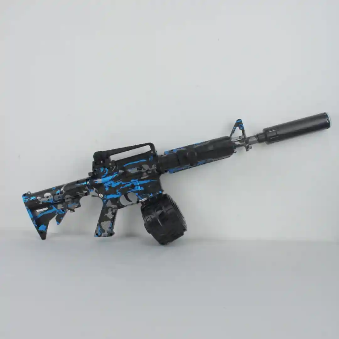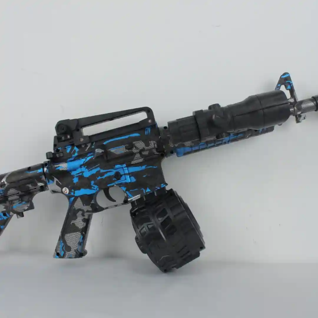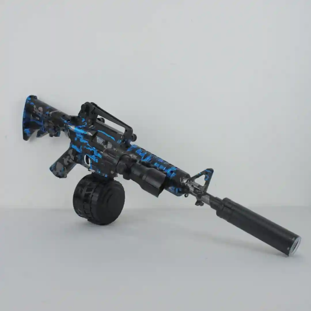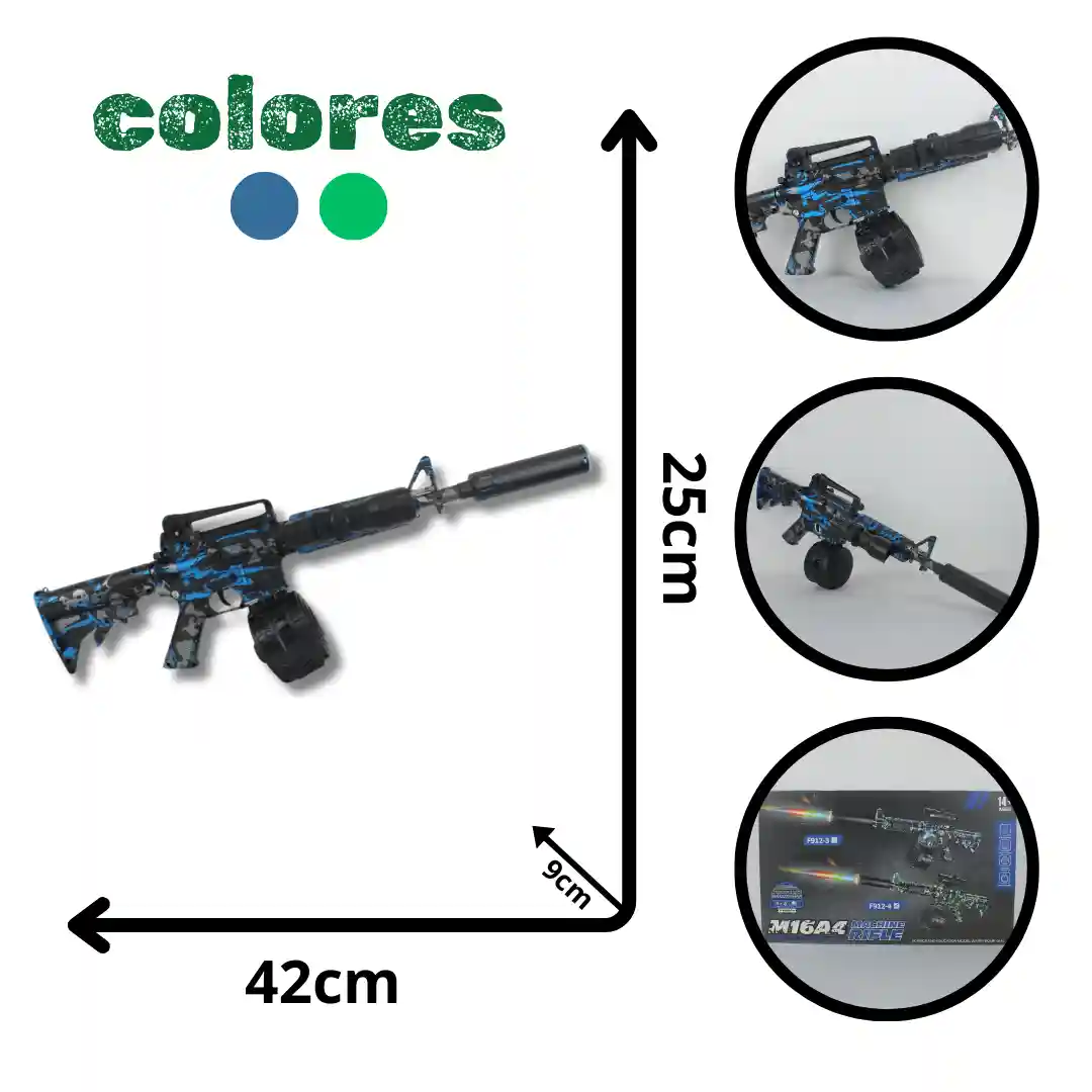 Juguete recreativo de tiro con diseño moderno y compacto, ideal para juegos de acción. Utiliza esferas de hidrogel suaves y biodegradables como munición. Incluye un mecanismo eléctrico con batería recargable para un disparo rápido y consistente.