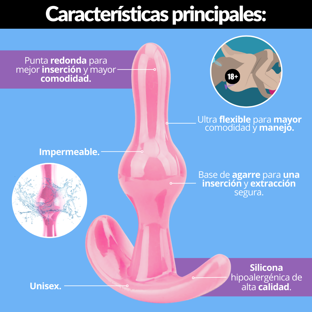 Plug anal diseñado especialmente para quienes quieren iniciarse en la masturbación o en el sexo anal de una forma cómoda, segura y sin complicaciones. Su forma con punta redondeada facilita la inserción de manera suave, mientras que su práctica base con asa de agarre te da la tranquilidad de un control total para colocar y retirar el plug sin riesgos, lo que lo convierte en un juguete ideal tanto para principiantes como para quienes desean añadir un toque diferente a sus encuentros íntimos. Está fabricado en silicona hipoalergénica de alta calidad, un material suave al tacto, duradero y completamente seguro para el cuerpo. Lo mejor es que puedes usarlo en cualquier momento: mientras ves televisión, mientras realizas tus actividades cotidianas o durante el acto sexual para intensificar las sensaciones y elevar el nivel de placer en pareja o en solitario.