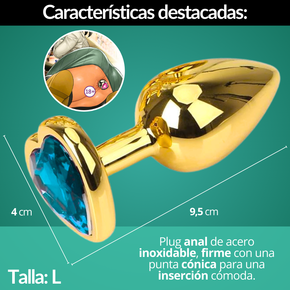 ¡Prepárate para una experiencia íntima como ninguna otra con nuestro Plug Anal Gold Heart! Fabricado con acero quirúrgico inoxidable, este seguro, higiénico y sin olor plug es perfecto para juegos previos antes de la penetración. Su diseño gradual te permite dilatar cómodamente, mientras que su base con una hermosa joya en forma de corazón añade un toque de elegancia. Su suave textura facilita su inserción, ¡y puedes jugar con la temperatura exponiéndolo al frío o al calor! ¡No dejes que la monotonía invada tu intimidad! Con el Plug Anal Gold Heart, cada encuentro se convierte en una experiencia única.