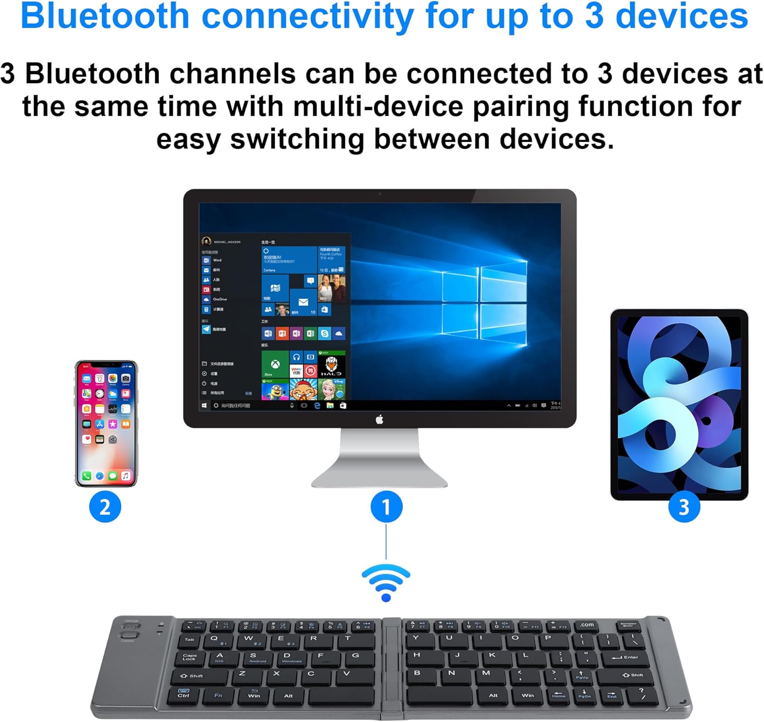 Amplia compatibilidad: este teclado plegable Bluetooth es compatible con sistemas operativos iOS, Android y Windows. El teclado inalámbrico Bluetooth es adecuado para iPhone, Android, Windows Tablet, PC y Windows Phone y otros dispositivos.