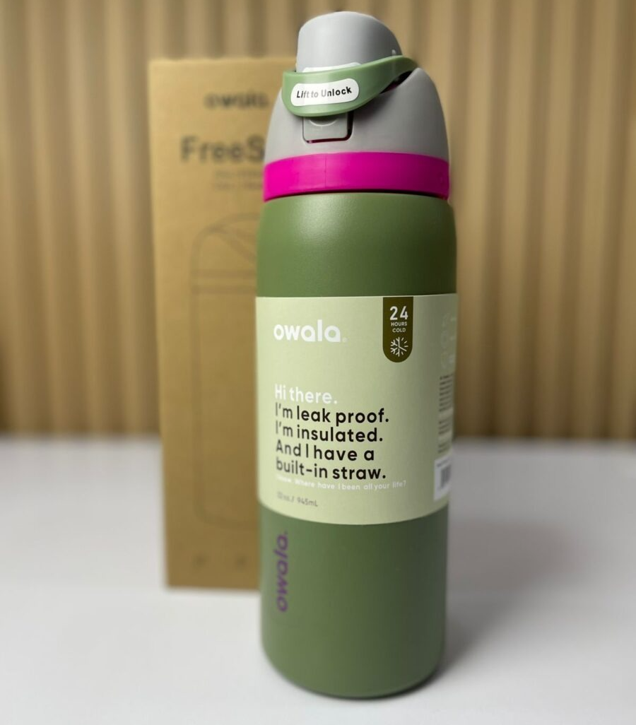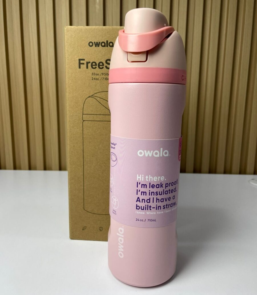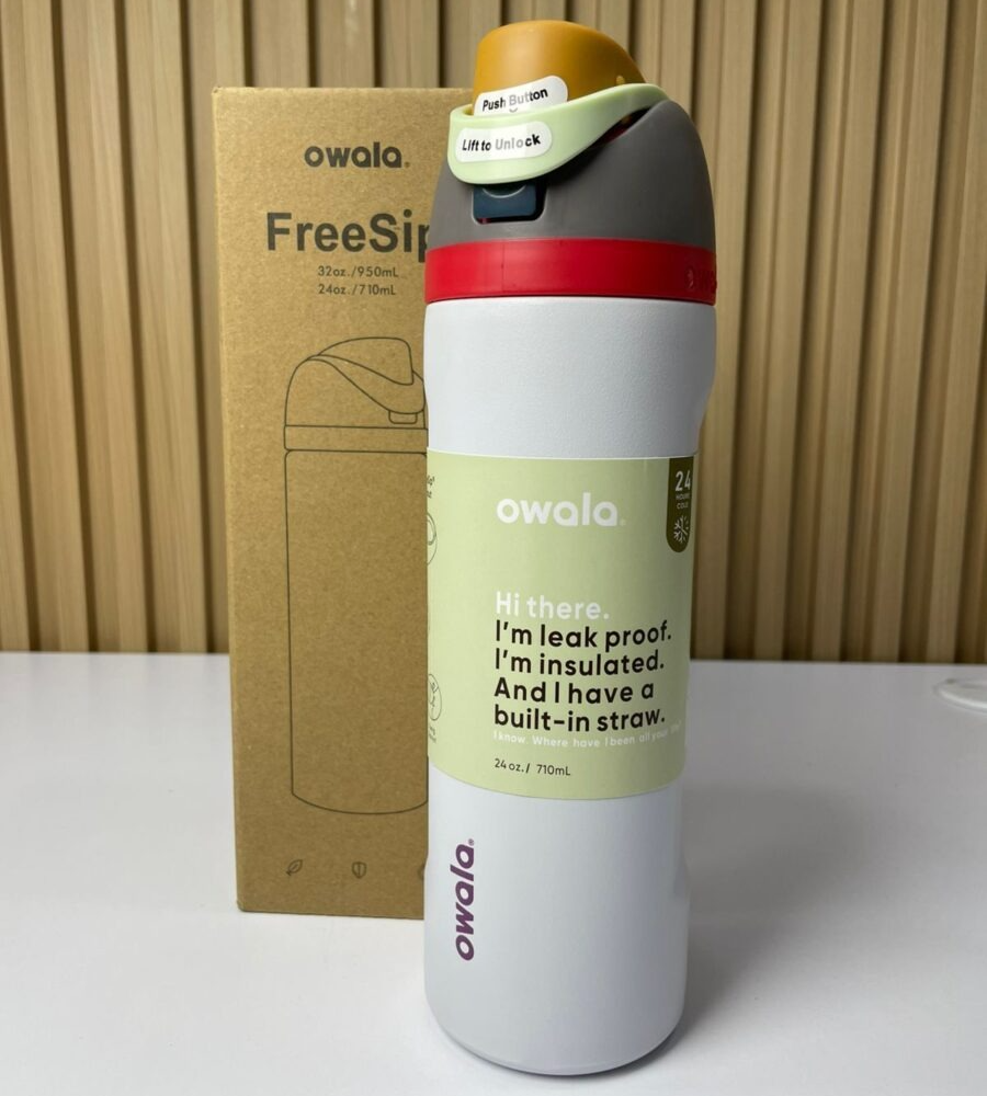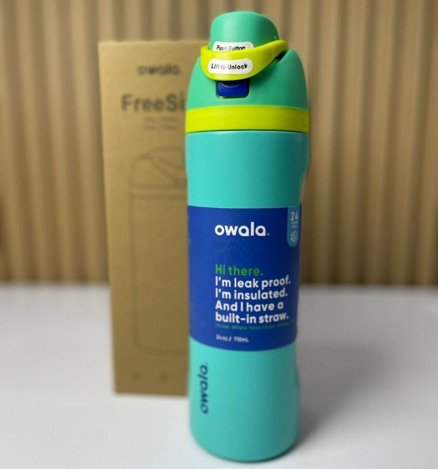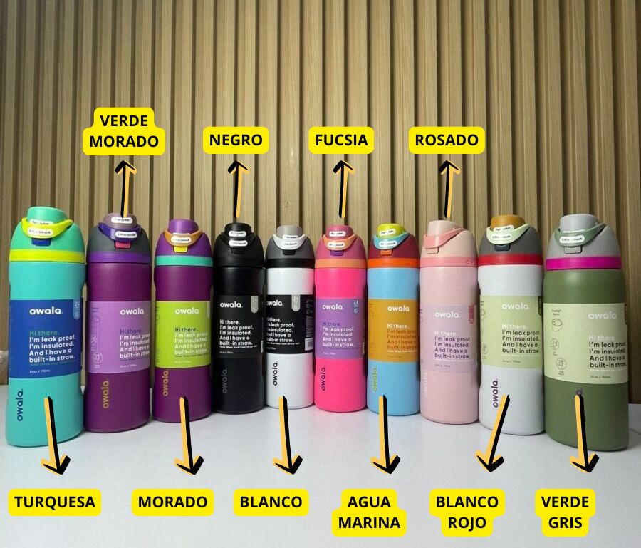 El termo Owala es un contenedor de hidratación de acero inoxidable con aislamiento térmico de doble pared, diseñado para mantener la temperatura de líquidos durante periodos prolongados. Incorpora un sistema de tapa con cierre seguro y un mecanismo integrado que permite beber mediante popote interno o mediante vertido directo. Su estructura está optimizada para evitar fugas, maximizar la retención térmica y garantizar una operación ergonómica y fiable en uso continuo.